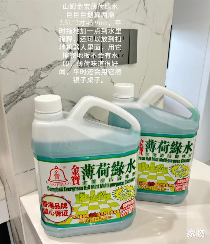 我从山姆买过最划算的清洁用品,就是这金宝薄荷绿水,比花露水好闻,也有一定的清洁力,最适合的就是擦瓷砖擦地板,既能祛除污渍,又能让地面长久保持香香的状态,我真的超爱用。