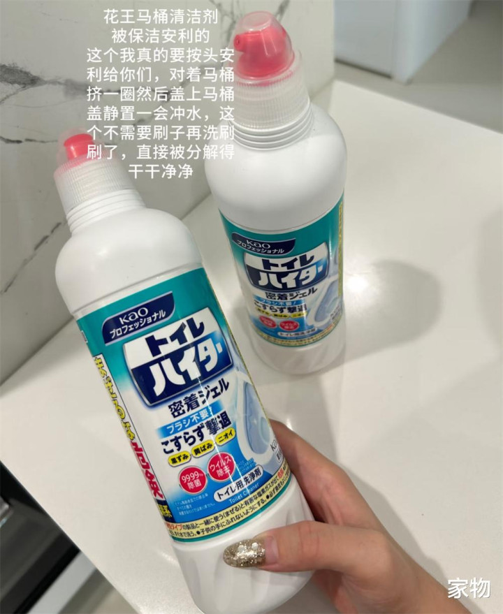 这东西真不用我多说了,马桶清洁剂这方面,我用的最多的一个是威猛先生(便宜量大好用),另一个就是这花王的马桶清洁剂(清香且分解效果强),总之不多说,用用试试就会明白,我并没有乱说!